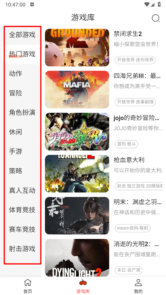 2. 在游戏库中浏览并选择感兴趣的游戏。