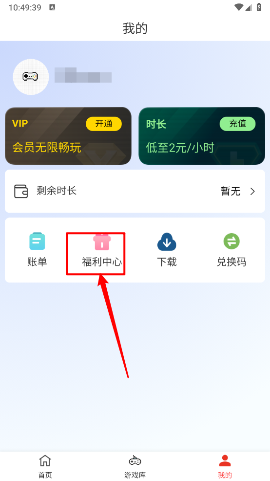 5.最后在我的页面点击"福利中心"完成任务领时长。