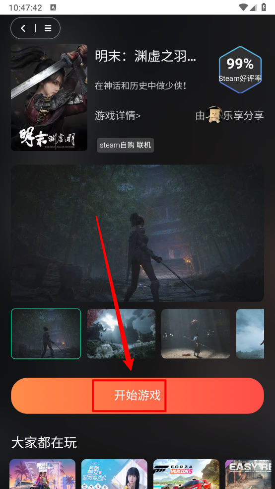 4.在游戏详情页面点击"开始游戏",即可自由启动畅玩。