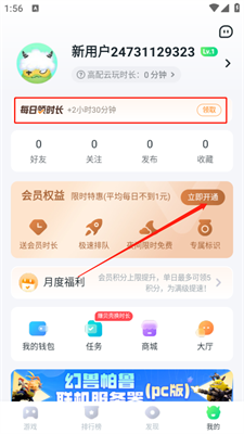 4.在个人中,每日就能直接领取时长,当然开通会员也是一劳永逸办法!