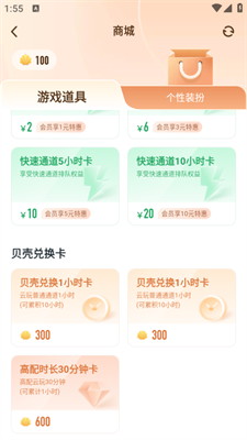 2.我们进入到商城可以用道具来兑换免费时长!