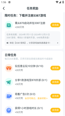 3.进入月度福利里面完成相应的奖励,任务同样能够获取一定量的云贝来!