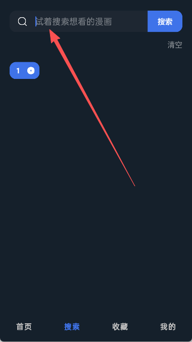 2、输入想要查找的漫画的关键字,比如漫画或作者名称。