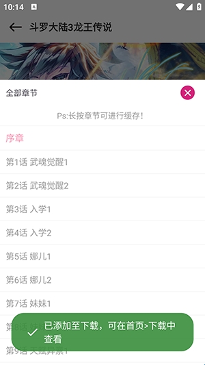 答:在漫画详情页点击“下载”按钮,选择需要的章节并确认,下载完成后可在“我的下载”中查看。