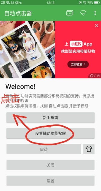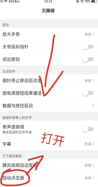 第二步:在辅助服务列表中找到并启用“自动点击器app”