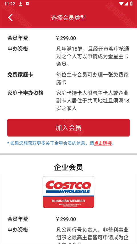 - 开市客提供两种会员类型:金星会员(面向个人用户)和企业会员(需具备企业资质)。请根据自身情况选择符合资格的会员类型,点击“加入会员”。