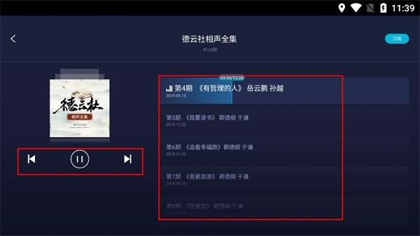 3、进入任一有声资源页面后,可自由切换集数,或执行暂停、跳转下一集等操作。