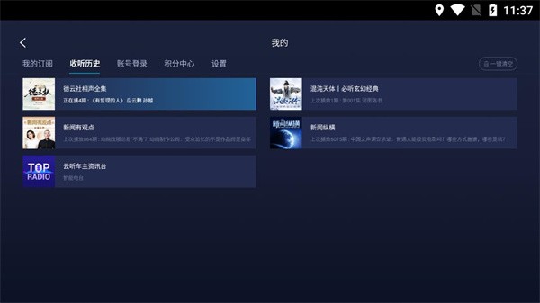 5、点击右上角人像图标,可查看收听历史、订阅列表及积分中心等个人专属信息。