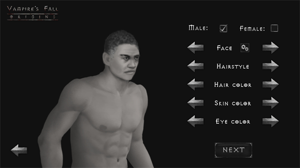 2、首次进入需设置角色形象,可自定义发型、肤色、瞳孔颜色等,点击 “NEXT” 进入下一步;